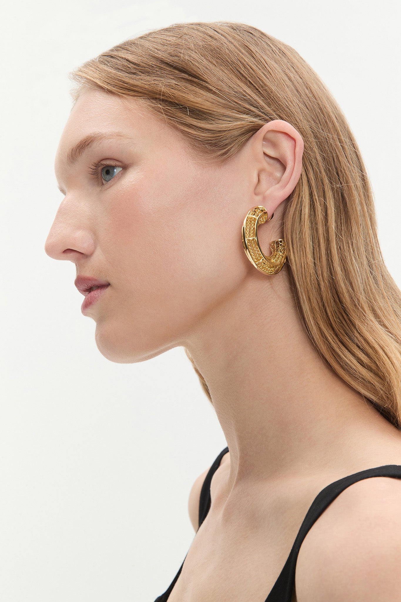 - Plated brass hoop studs
