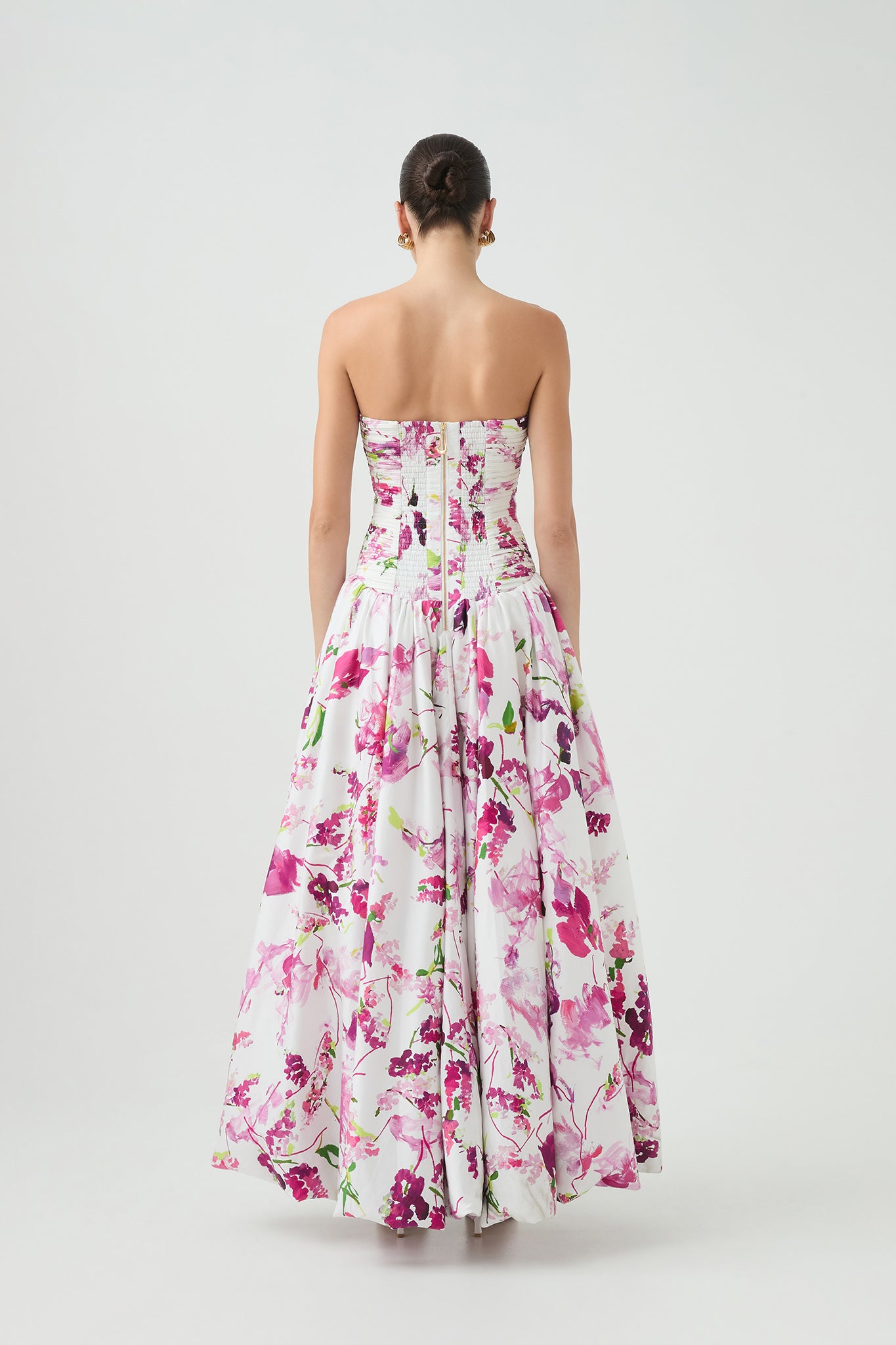 • Fitted bodice with internal structure and gentle ruching to sculpt the torso