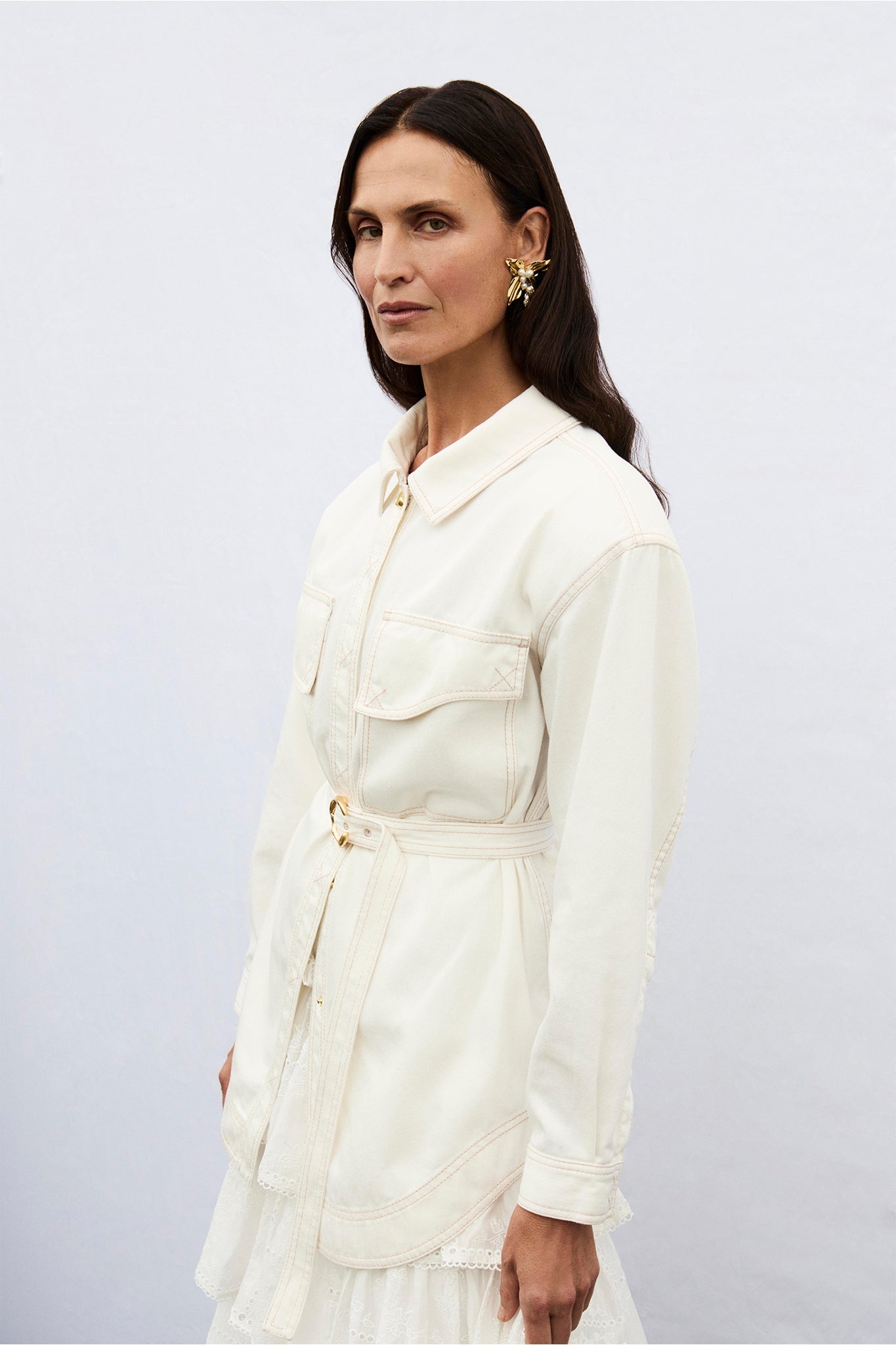 - Detachable belt with contrast stitching and feature buckle