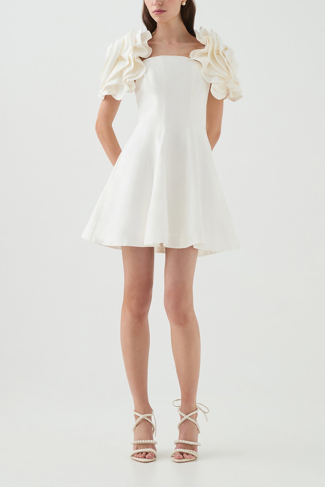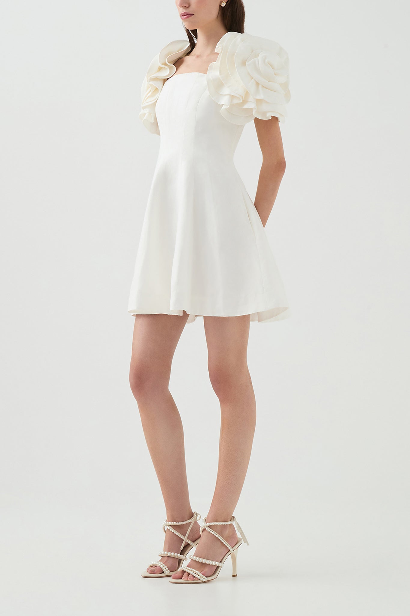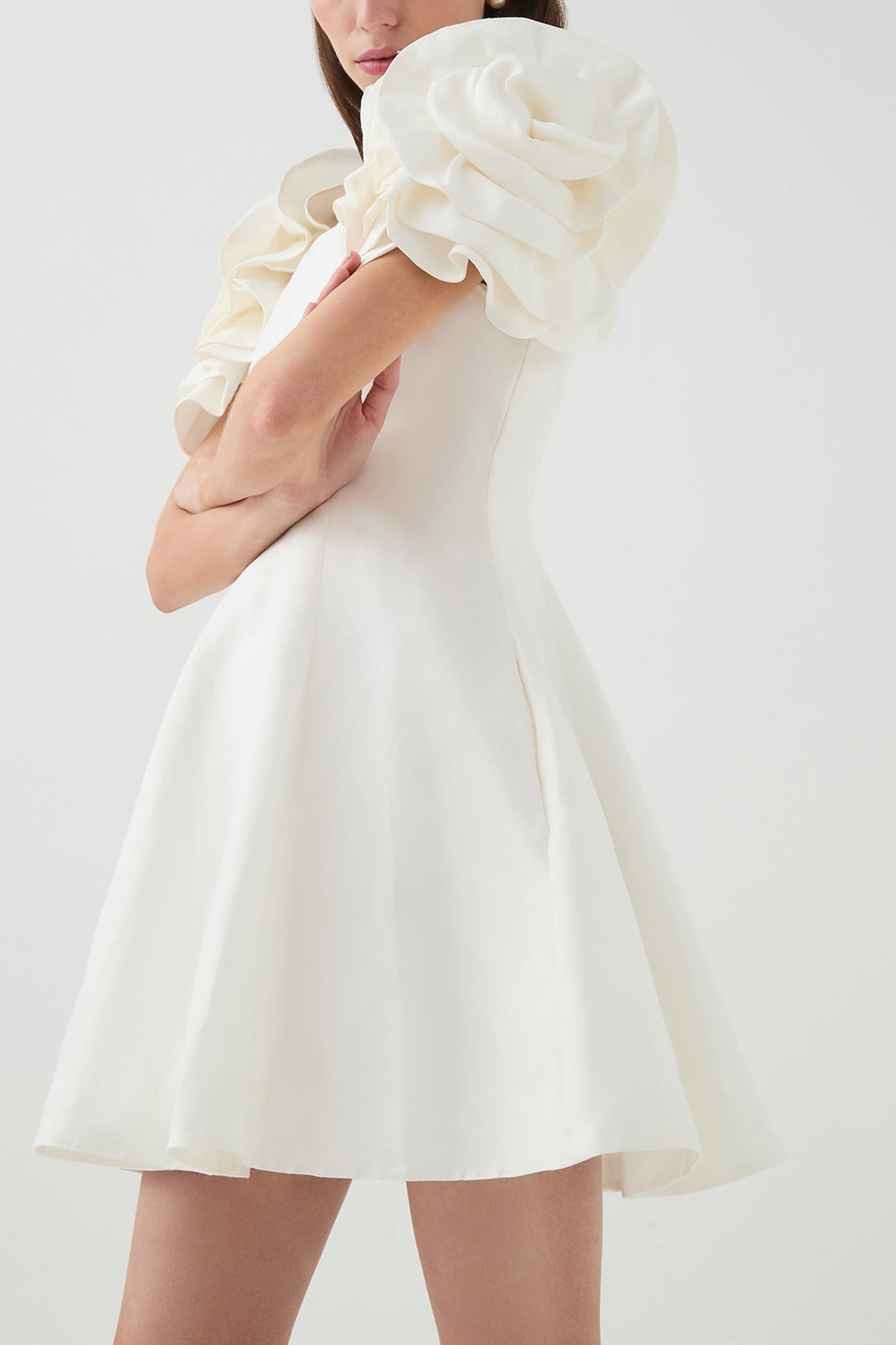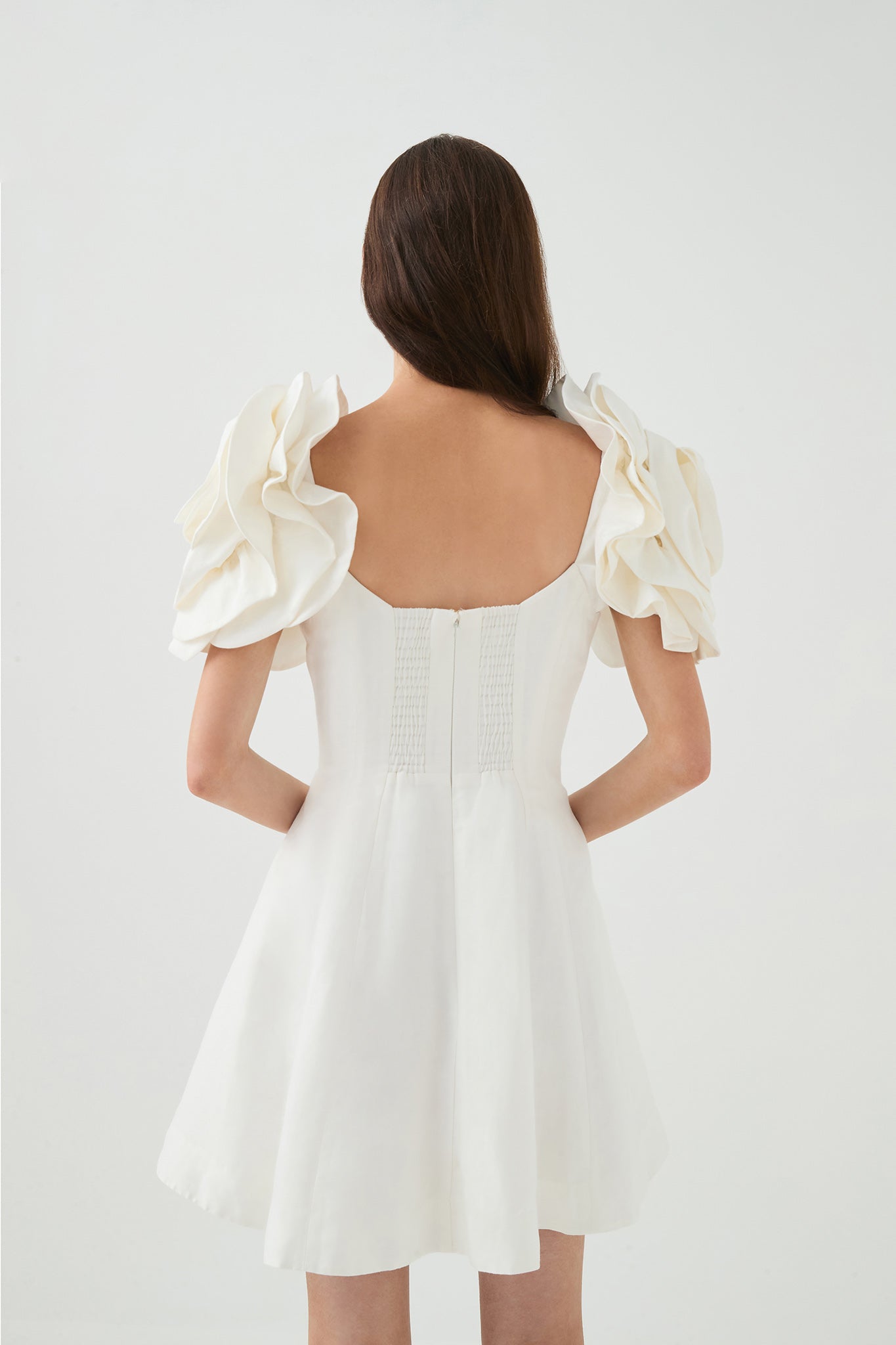 - Draped flower sleeves with elastic construction